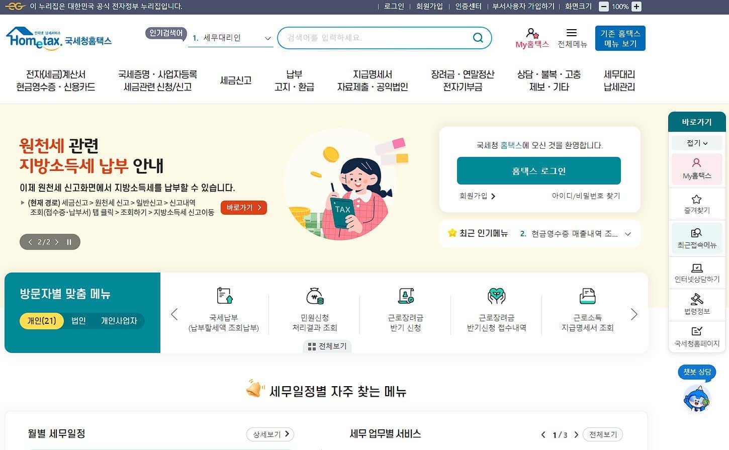 자, 먼저 국세청 홈택스 홈페이지에 접속합니다.
